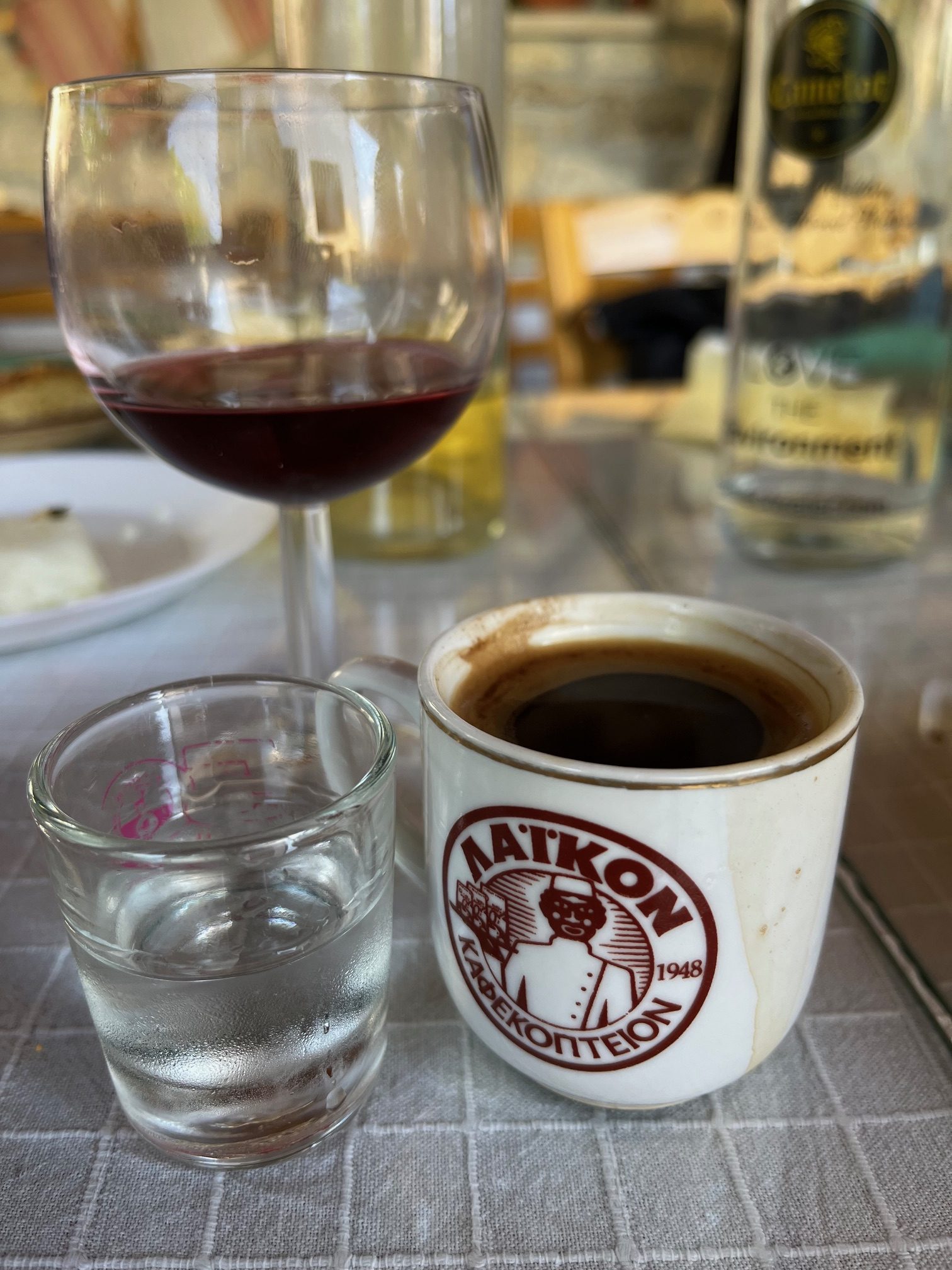 Achieving standout was kleftiko, lamb slow roasted until it’s incredibly tender and falls off the bone. The name ‘kleftiko’ translates as ‘stolen’, referencing the historical practice of bandits stealing lamb and cooking it in underground pits to avoid being caught.  This dish, traditionally cooked with herbs, vegetables and potatoes, would be outstanding with a glass of red Aeoneo 2021, from the Santa Irene Winery high up in the mountains. Made from 100% Mavro grapes from vineyards which are over 100 years old, this ripe, rich wine with an intense spicy aromatic bouquet and a tannic full body, would admirably complement the  richness of the kleftiko.