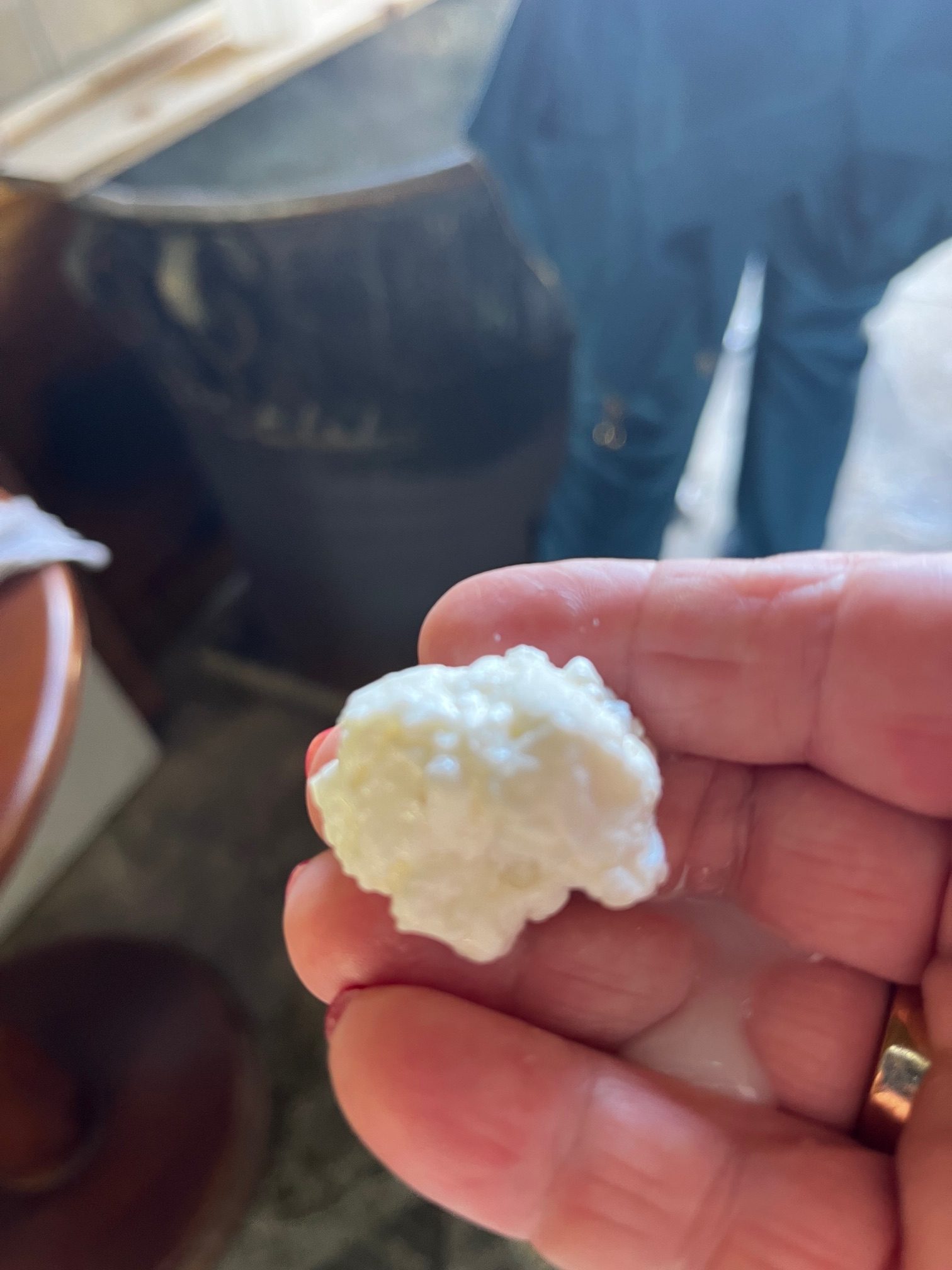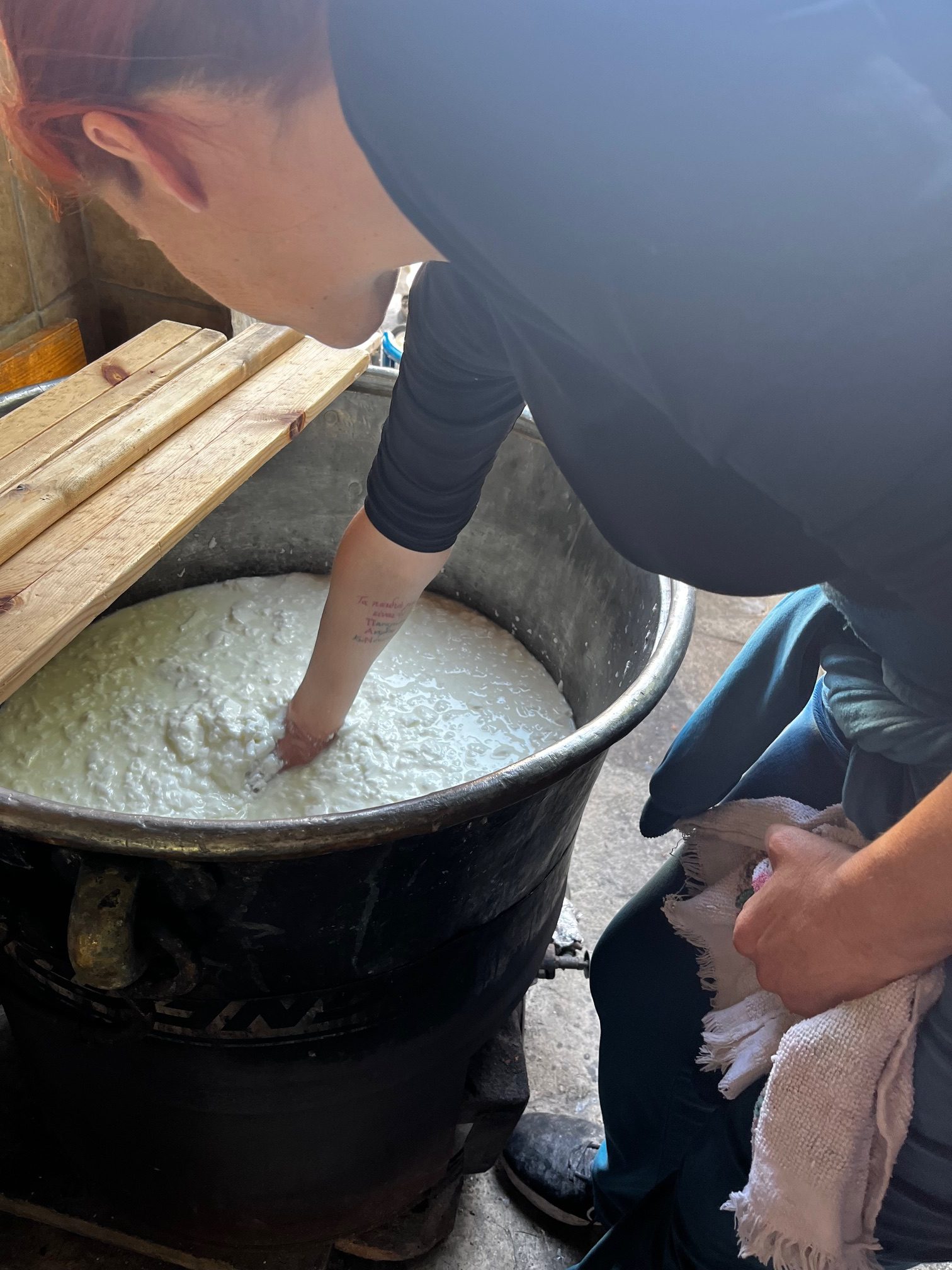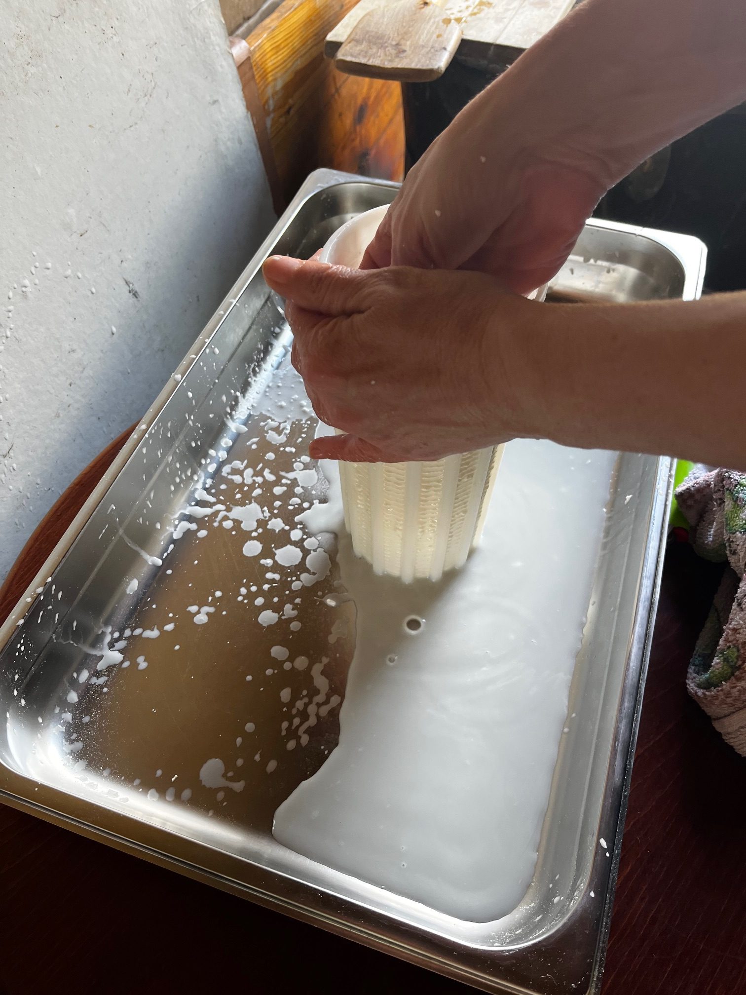 Watching halloumi being made was a mesmerising experience. This typical Cypriot cheese is made by first coagulating milk with rennet to separate curds and whey. The curds are then heated in the whey, pressed in a mould and brined in a salted whey solution. This process gives halloumi its characteristic salty taste and the unique, firm texture that holds its shape when cooked.