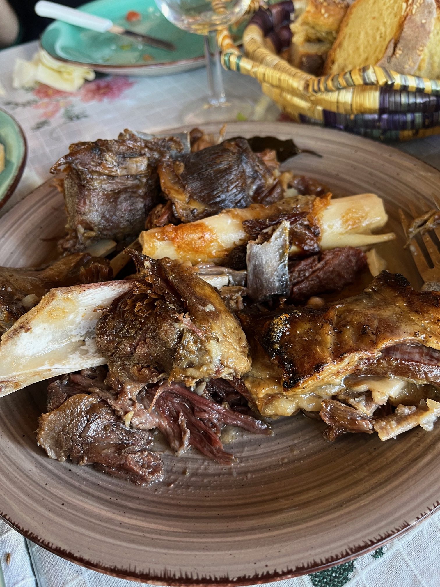 And so to the table for a rewarding lunch after all the hard work. The dishes just kept on coming, ‘that’ bread, and ‘that’ halloumi sprinkled with mint took centre stage, and then so many dishes it’s almost impossible to list them all.  A glass of the white Xynisteri 2024, like the one we tasted at the Tsangarides winery, would be perfect with the cheese. Fresh, citrussy and with good acidity, from a very good year, this Xynisteri undergoes a cold maceration for eight hours thus taking elegant aromas from the skins. Batonnage and three months in oak gives it body and complexity.